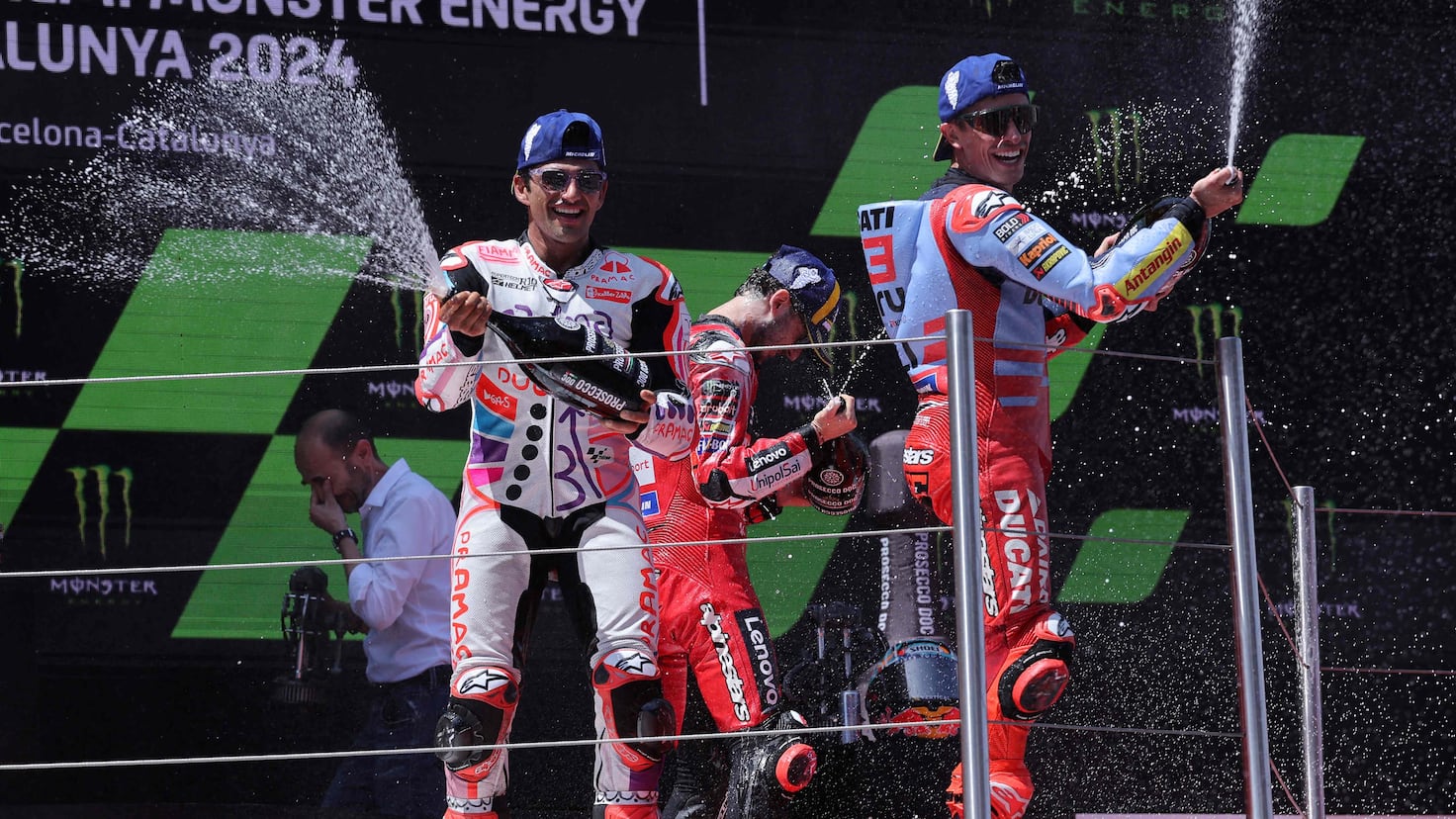 Pocos minutos después de la ceremonia del podio del GP de MotoGP en Cataluña, se respiraba un aire tranquilo y alegre en el box de la Lenovo Ducati, la oficial de la fábrica italiana.